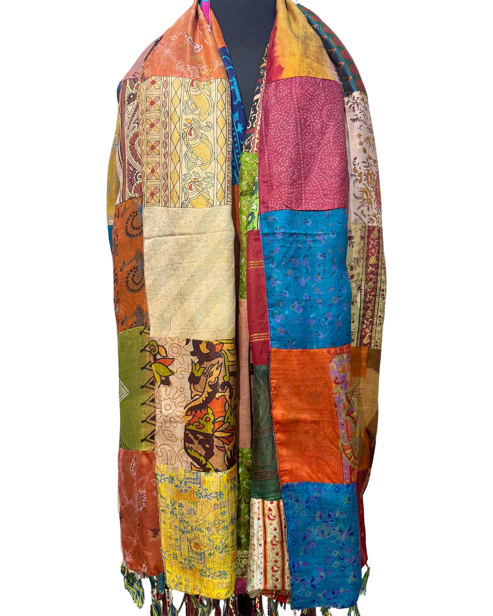 Wrap yourself in something truly unrepeatable. Our one-of-a-kind recycled saree silk wraps are crafted from 100% pure silk, each piece thoughtfully reimagined from vintage sarees with rich histories and intricate artistry. No two are ever alike—every wrap carries its own unique blend of colors, patterns, and textures, making it as individual as you are. Lightweight yet luxurious, these versatile wraps can be styled effortlessly for any occasion, from everyday elegance to statement layering. Sustainably made and impossibly distinctive, each wrap is a wearable story - once gone, it can never be recreated.